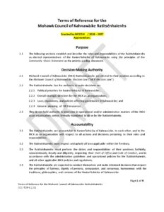 The policy used to administer the land of Tioweró:ton and ensure it remains in common for the benefit of the current and future generations.